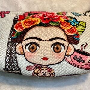 Frida Kahlo Bag Cream Textured Clutch Frida Print Zipper Pull Morelia Mexico