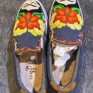 Frida Kahlo Hand Stitched Slip On Tennis Shoes Size 9 ZIPKA NA