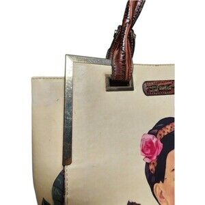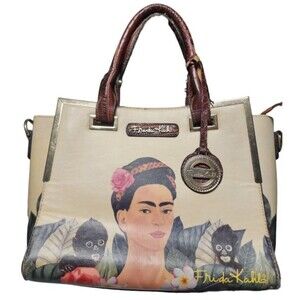 The Frida Kahlo Jungle Collection Monkey Series Purse is a medium-sized rectangular bag with a zip closure and brown faux leather handles. The multicolor exterior features vibrant artwork inspired by the artist Frida Kahlo, making it a stylish and unique accessory for various occasions such as travel, casual outings, workwear, and business meetings. The gold-plated hardware adds a touch of sophistication, while the inner pockets provide practical storage for essentials. This trendy top handle bag is a must-have for women who appreciate art, color, and individuality in their fashion choices.