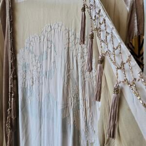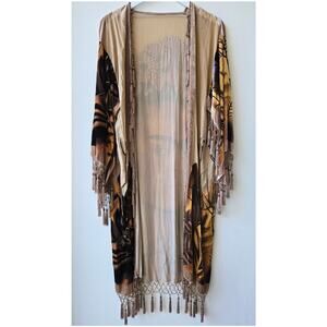 Frida Kahlo Vintage Silk Velvet Beaded Long Duster Kimono Cinco de Mayo One Size