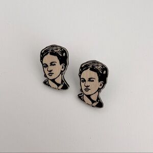 Stunning Frida Kahlo wooden earrings, perfect for adding a touch of bohemian flair to your look. Natural wood color and black with post backs.These earrings are lightweight and comfortable to wear.