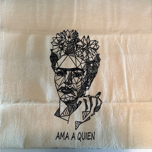 Cream towel featuring a striking black geometric art design. Perfect for adding a unique touch to your space.