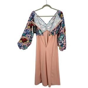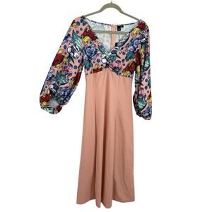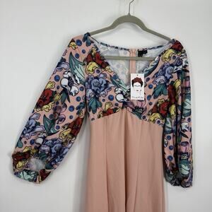 NEW Frida Kahlo x SHEIN floral print midi dress size Small Balloon Sleeves