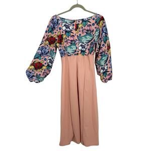 Frida Kahlo x SHEIN floral print midi dress size Small Balloon Sleeves Artsy NEW