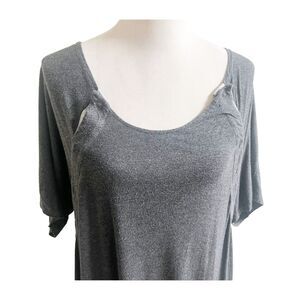 This Frida maternity dress is perfect for nursing mothers. The dress has a stylish scoop neckline and short sleeves, with a button closure for easy breastfeeding access. The solid gray color is versatile and suitable for all seasons.