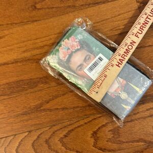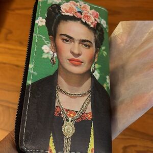 Frida inspired portrait wallet. Zipper w/ two sides for credit cards/inside zipper pocket. NWT & Smoke free/Pet free home. See ALL photos for complete description/details.