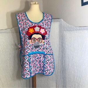 Fun colorful floral Frida Khalo character apron. One size. Pre-owned almost like new condition. Please refer to pictures for best description and condition verification.