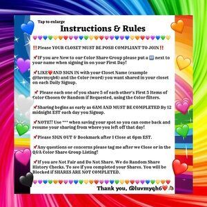 ๐Please read the pictures Slides for Updates, Instructions, and Rules for our Color Share Group. If you have any Questions or Concerns please place my Closet name @luvmyqh6 before your message. It helps me get a message faster! Feel free to Ask Anything! Have a Bright Colorful Day!๐โโ๏ธ๐โโ๏ธโค๏ธ๐ด