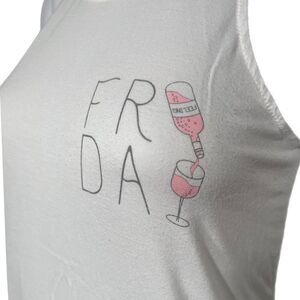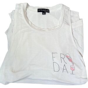 Super comfortable SOFT stretch viscose! Relaxed fit lounge tank by Fifth Sun. Adorable bright pastel front wine “Friday feeling” graphic. There is a small, faint stain on the back of the top; see “imperfections” photo for highlight!