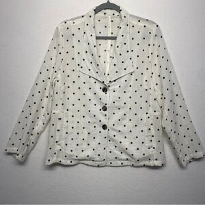 Fridaze 100% Linen Blazer Jacket Polka Dot White Lagenlook Art to Wear M