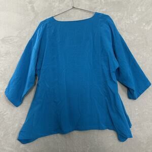Fridaze Top Turquoise Blue Linen Popover Blouse XL Lagenlook Asymmetric Artsy