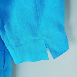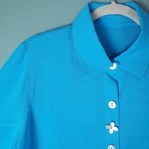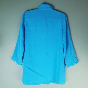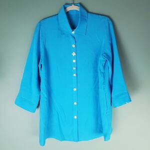 Fridaze Womens Blue Linen Button Up Tunic Top Size Small Coastal Pockets