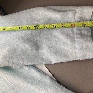 Lightweight and breathable, this mint-green shirt features a classic collar, button accents on the back, and 3/4 sleeves for a relaxed fit.Full front button Closure, Very good condition, Wrinkle resistant,
