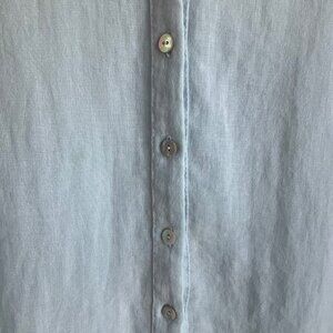 Fridaze XL Linen Aqua Light Blue Button Tunic Shirt 3/4 Sleeves Minimalist Coast