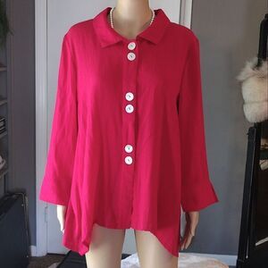 Fridaze Women's Size Small 100% Linen Solid Red Flowy Blouse Button up Top
