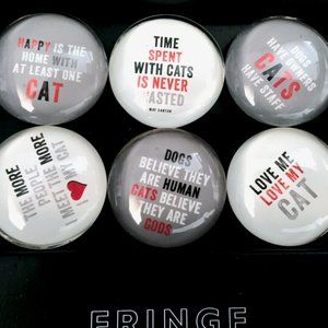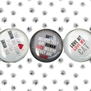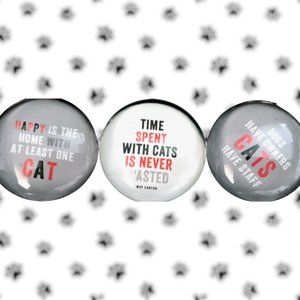 Set of 6 glass domed refrigerator magnets with sayings in appreciation of cats.