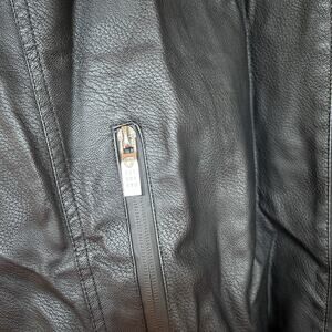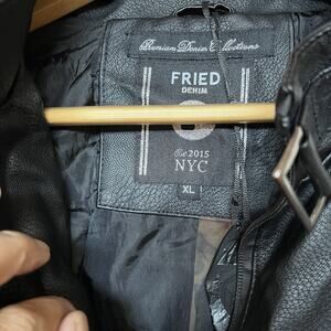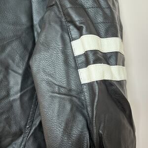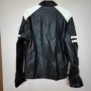 Fried Denim Faux Leather Biker Jacket Black & White Size XL