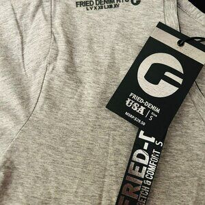 Fried-Denim NYC Premium Quality Gray Stretch Comfort Puff Print Tee Size Small.