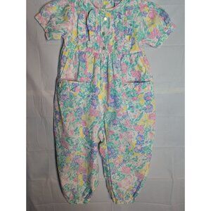 Friedknit Creations Girls Toddler Pastel Floral Romper Sz 3T Ruffles 90s Easter