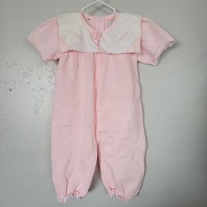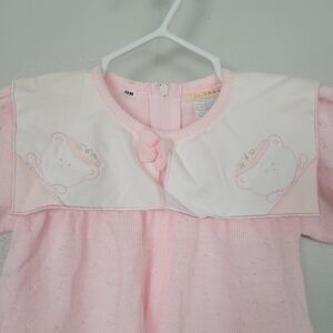 Friemanit Vintage Baby Girl 9 Months Light Pink Knit Outfit Square Collar Bear