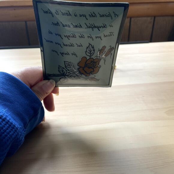 Friend Glass Plaque Houze ART Pt Marion PA USA made Vintage with stand