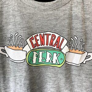 * Features: gray short sleeve tee, round neck, Central Perk graphic from FRIENDS