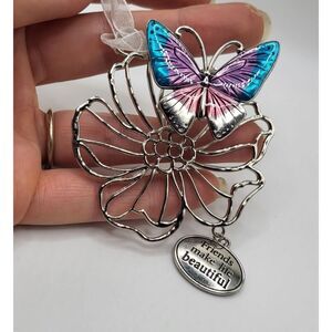 Friends Make Friends Pendant Amulet Ornament 2.5in wide | Materials: silver metal alloy | Length: 2.5in wide | Clasp:loop | Signed? no | Excellent vintage condition
