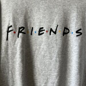 Classic gray crewneck pullover sweatshirt with "FRIENDS" logo graphic across chest