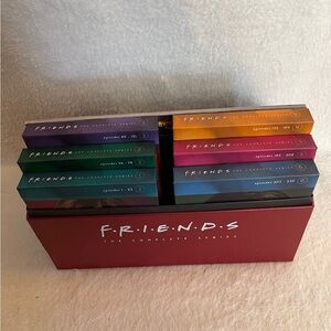 Friends The Complete Series in a vibrant red box. Perfect for fans of the iconic show.