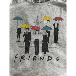 This FRIENDS TV Series short sleeve tee features a gray graphic design with the show's iconic characters and colorful umbrellas. Perfect for fans, it offers a comfortable fit with quality materials.