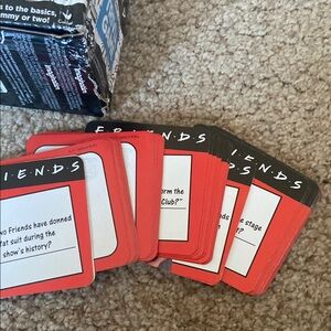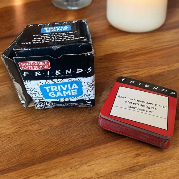 Test your knowledge with this Friends trivia game. Perfect for fans of the show. Compact and fun for gatherings.open box
