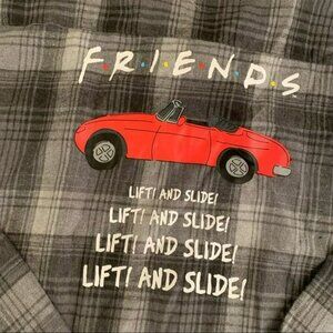 Friends mens size 3xl gray white long sleeve full button down graphic shirt