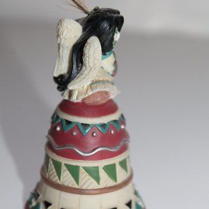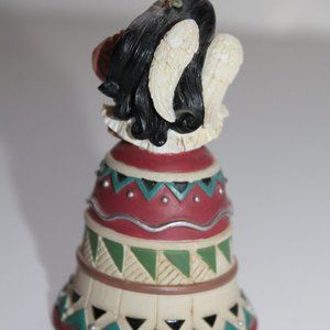 This is the Angel with Drum bell from Enesco's Friends of the Feather collection. Angel Indian girl has a feather in her hair and she is playing a drum atop a striped bell. No chips or cracks that I can see. Does NOT come with original box.