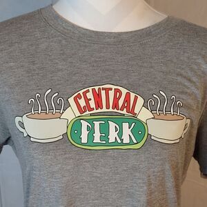 This gray short sleeve Friends the television Series Central Perk tee is a junior size XL with a pit to pit measuring 20". In excellent condition. All offers are welcome.