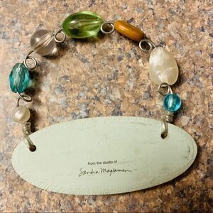 Small wooden friends forever sign with metal hanger and beads wrapped around. Perfect for desk gifts.