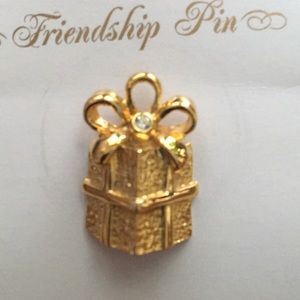 NWOT. Gold tone wrapped package with small clear sone in ribbon. 1” by 0.5”