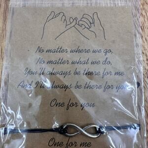 This Friendship Lover Couples Red and Black Heart Set and All Black Infinity Bracelet set includes two pieces each with a card, each symbolizing enduring connections with a sleek heart design on one and infinity design on the other. These sets come with promise cards, making it a meaningful gift for couples or close friends.