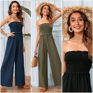 Frill Trim Shirred Bodice Tube Jumpsuit