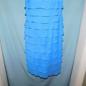 Beautiful blue knee-length dress by London Times. Size 10. True to size. Length is 39-40 inches from top pf shoulder and would probably fall above or about the knee on most. Cute Y2K style for a festive night out. See photos for very garment you will receive. No damage or stains. EUC.
