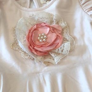 Frilly Frocks, size 4Y, flutter sleeves, lace tie waist, button closure in back, three tiered ruffle hem. Slight two spots on back (picture included).
