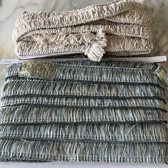 9&1/2 yds of 1&1:2 in blue & 5 yds of taupe 1&1/4 in Both new& get for pillow trim upholstery & crafts