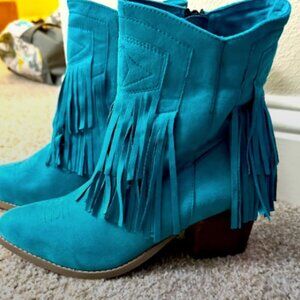 Fringe Boots Western Cowboy Blue Suede Fringe Boots The Sandra Boot