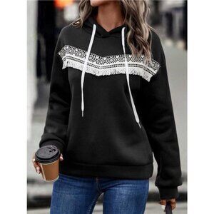 Fringe Detail Long Sleeve Drawstring Hoodie
