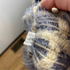 Fringe Poncho Knit Women’s One Size Gray Blue Cream Checkered Sweater