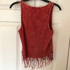 Red tank top with fringe at the bottom.