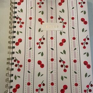 Charming notebook with red cherry design. Ideal for notes and ideas.