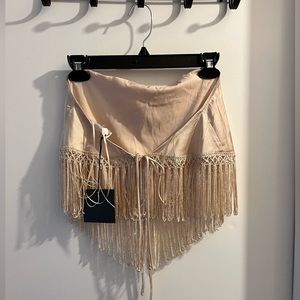 Fringe tank that ties like a bandanna style top in a champagne gold color. Size small. New with tags, bought from a boutique.