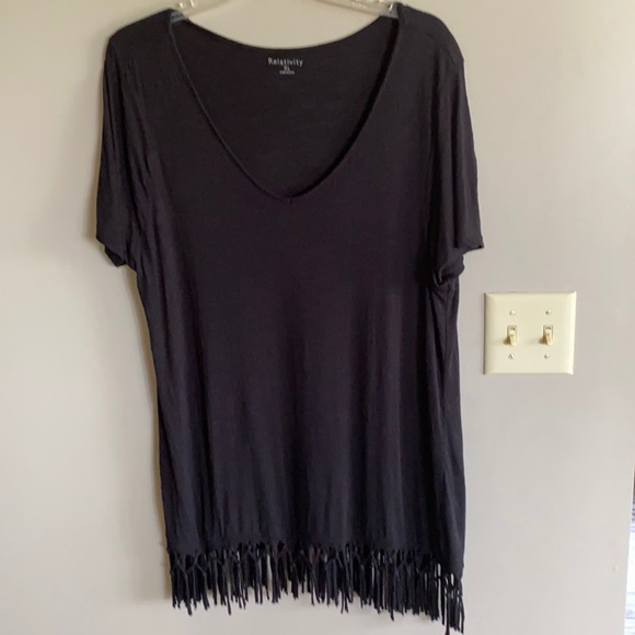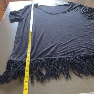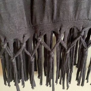 Fun fringe tee in a black semi sheer slub knit.