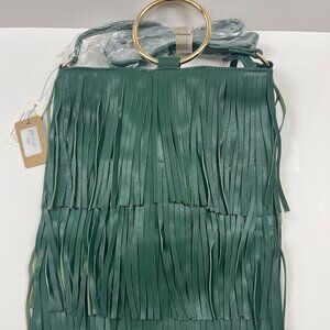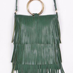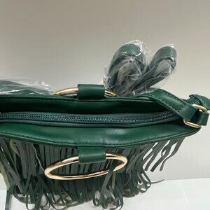 Fringe Tiered /Tassel/ Gold Hoop / Bohemian Crossbody/ Retro 70s - Green - NWT