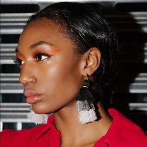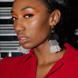 Fringe Tri Color Dangle Earrings Black, gray and off white fringe dangle earrings with turn twist closures